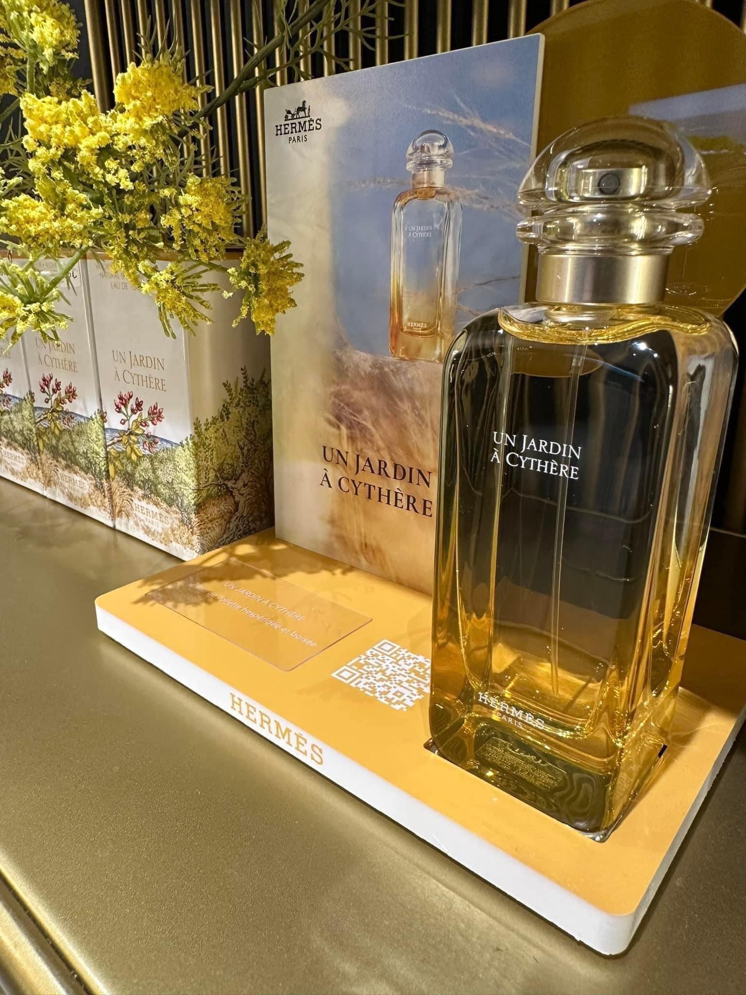+ “Un Jardin à Cythère” nằm trong bộ sưu tập mùi hương “Parfums Jardins” của Hermès, với sự kết hợp hài hòa giữa linh hồn của một điểm đến, với nguồn cảm hứng của nhà điều hương và chủ đề mà thương hiệu lựa chọn mỗi năm. “Un Jardin sur le Nil”, ra mắt năm 2005 là mùi hương đầu tiên của bộ sưu tập này.
