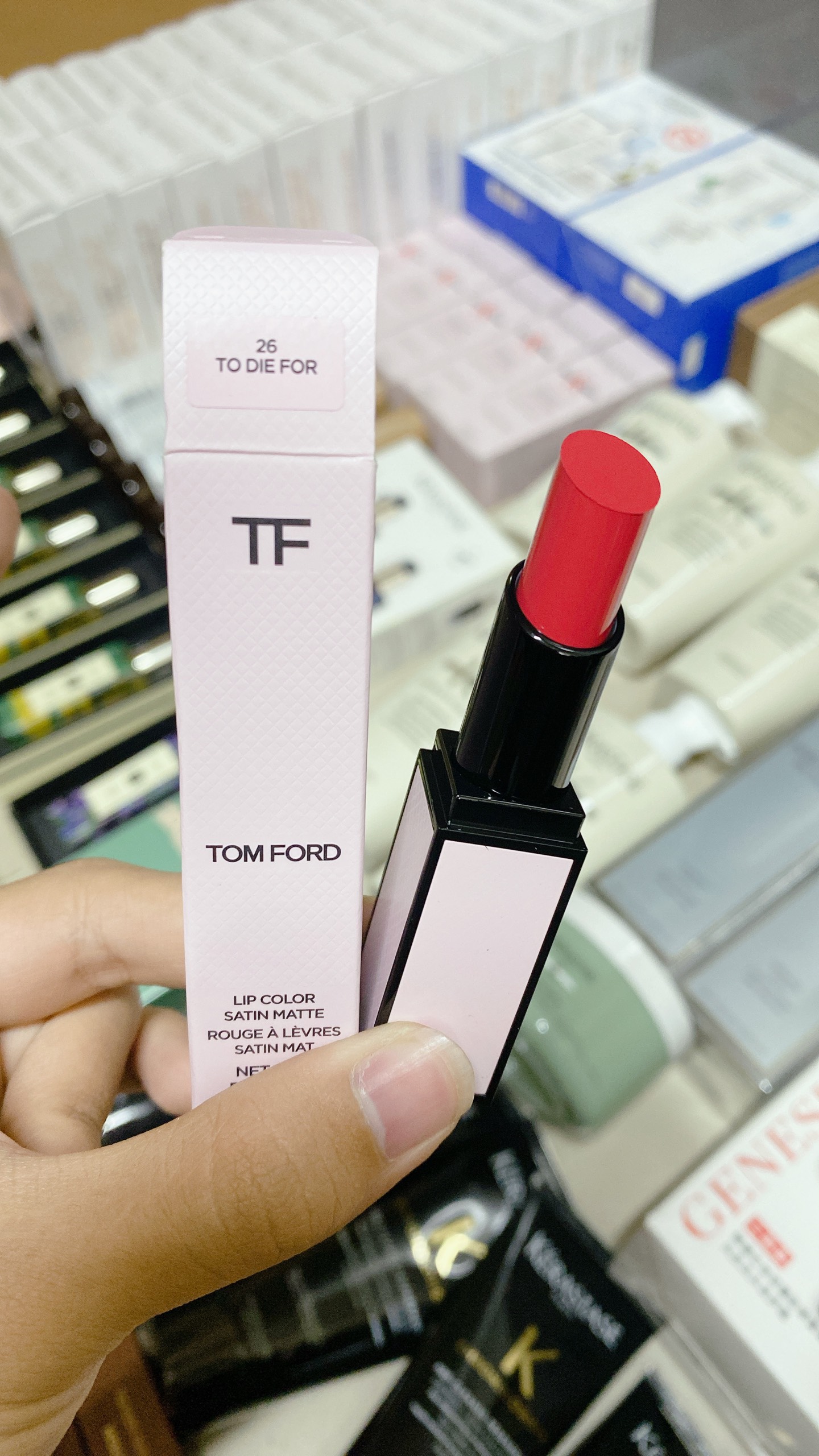 – Chất son satin matte của Tom Ford 26 mượt mà như nhung không cần phải tô đi tô lại nhiều lần, chỉ duy nhất 1 lần là lên màu chuẩn luôn (son sao lên môi y như vậy) rất mềm môi và lâu trôi nhé.